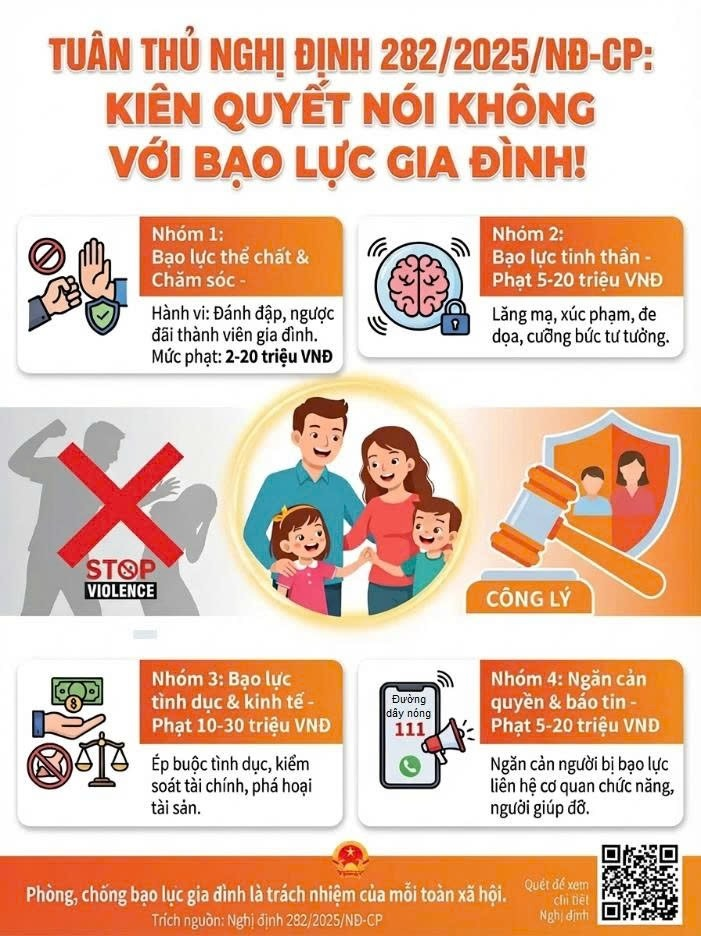 Nghị định số 282/2025/NĐ-CP đã cụ thể hóa Luật Phòng, chống bạo lực gia đình năm 2023, mở rộng phạm vi nhận diện các hành vi bạo lực và tăng cường tính răn đe, bảo vệ nhóm yếu thế. Đây là bước tiến quan trọng thể hiện cam kết của Nhà nước trong phòng, chống bạo lực gia đình, thúc đẩy bình đẳng giới và xây dựng gia đình an toàn, hạnh phúc.