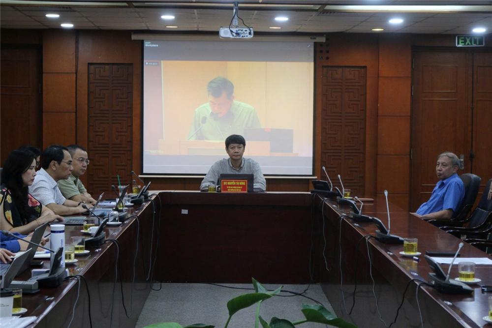 Đồng chí Nguyễn Tài Đông, ủy viên Ban Thường vụ, Trưởng ban Ban Tuyên giáo và Dân vận Đảng ủy Viện Hàn lâm chủ trì Hội nghị tại điểm cầu Viện Hàn lâm