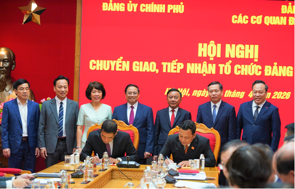 Đảng ủy Chính phủ và Đảng ủy các cơ quan Đảng Trung ương ký biên bản chuyển giao, tiếp nhận tổ chức đảng và đảng viên.