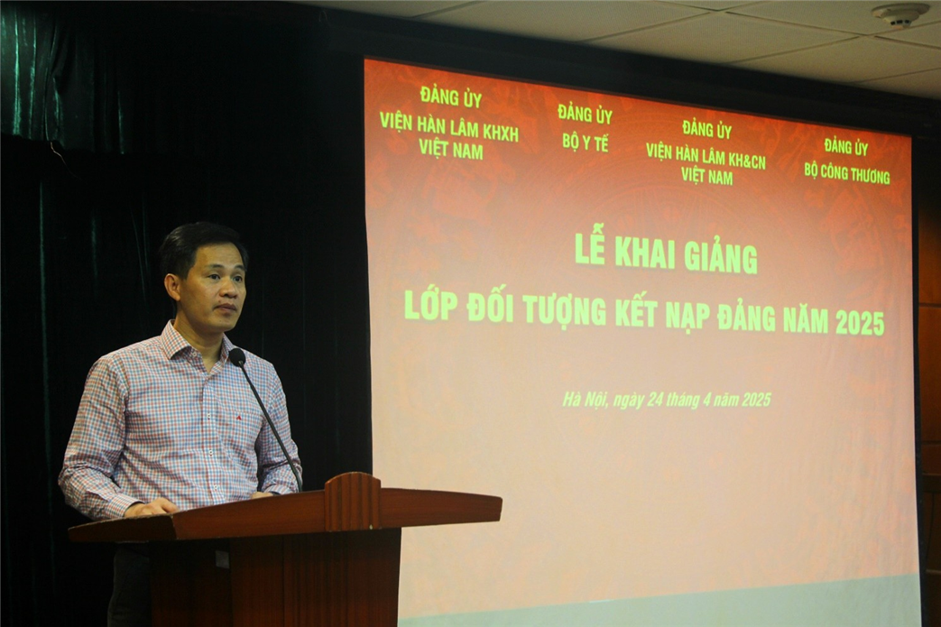 Tiếp tục trên cơ sở phối hợp công tác giữa Đảng ủy Bộ Y tế, Đảng ủy Viện Hàn lâm Khoa học xã hội Việt Nam, Đảng ủy Viện Hàn lâm Khoa học và Công nghệ Việt Nam và Đảng ủy Bộ Công thương, Lễ Khai giảng Lớp bồi dưỡng nhận thức về Đảng dành cho đối tượng kết nạp đảng năm 2025 đã được tổ chức trang trọng.