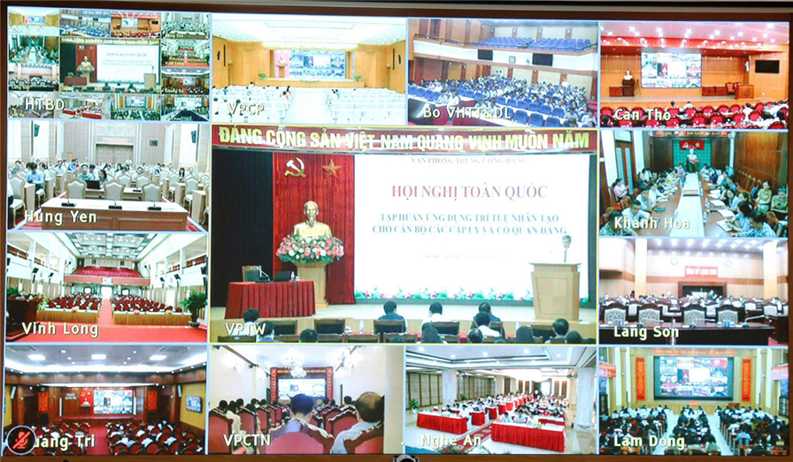 Phát biểu khai mạc tại điểm cầu chính, đồng chí Võ Thành Hưng, Phó Chánh Văn phòng Trung ương Đảng nhấn mạnh: Bối cảnh chuyển đổi số quốc gia đang bước vào giai đoạn tăng tốc, AI không chỉ là công nghệ thúc đẩy năng suất, mà còn là năng lực cốt lõi để hiện đại hóa phương thức lãnh đạo, chỉ đạo, điều hành của Đảng; nâng cao chất lượng tham mưu, tổng hợp; rút ngắn thời gian xử lý công việc, góp phần xây dựng các cấp ủy, cơ quan Đảng chuyên nghiệp, minh bạch, hiệu lực, hiệu quả. Vì vậy, Hội nghị có nhiệm vụ nâng cao nhận thức về vai trò, tiềm năng và định hướng ứng dụng AI trong công tác của các cấp ủy và cơ quan tham mưu của Đảng từ nghiên cứu, tham mưu, tổng hợp đến tổ chức triển khai, giám sát thực thi; Trang bị kiến thức và kỹ năng căn bản để đội ngũ cán bộ có thể sử dụng một số công cụ AI phổ biến nhằm nâng cao công tác tham mưu, tổng hợp thông tin, phân tích văn bản, chuẩn bị dự thảo, xây dựng kế hoạch và báo cáo; Hình thành thái độ và trách nhiệm đúng đắn trong sử dụng AI đảm bảo an toàn, bảo mật thông tin, tuân thủ quy định của Đảng và pháp luật của Nhà nước; phù hợp định hướng tư tưởng, chính trị đã được đề ra.