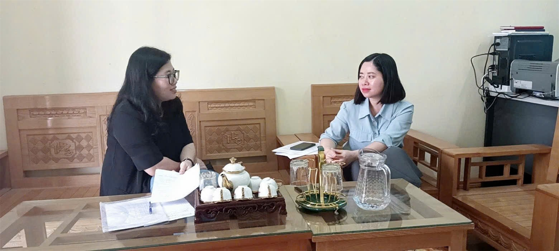 Chủ nhiệm Nhiệm vụ, ThS. Phạm Thị Huyền làm việc với lãnh đạo xã