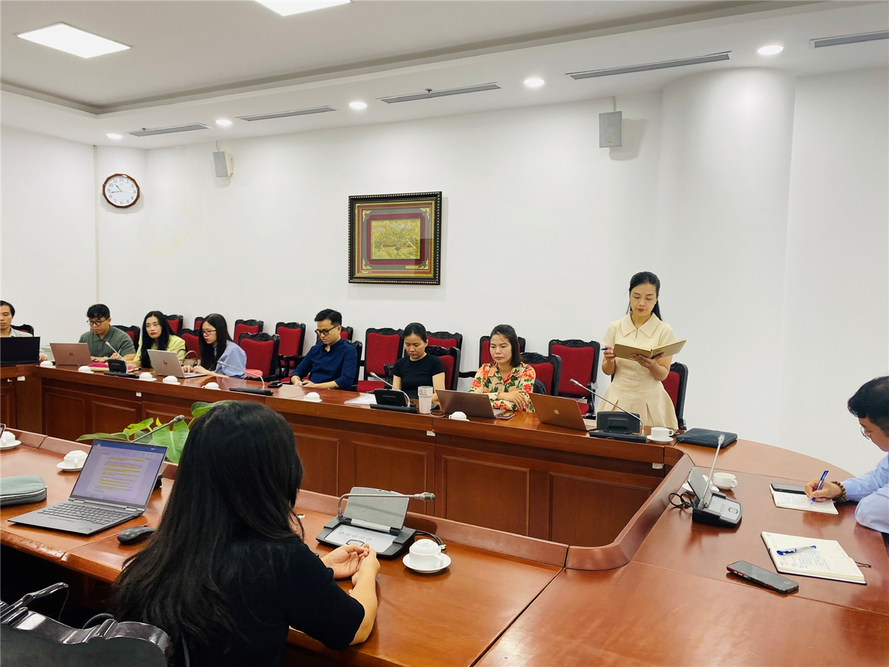 Công tác tuyên truyền, truyền thông trước Đại hội đang tiến hành khẩn trương với nhiều mảng công việc quan trọng, báo cáo tại Hội nghị, đồng chí Lại Thị Tố Quyên, Phó trưởng Tiểu ban Tuyên truyền Đại hội đã nêu rõ các đầu việc mà Tiểu ban cần triển khai như sau: Thiết kế banner, poster, logo, avatar chào mừng Đại hội trên Facebook. Đặc biệt là làm video clip ngắn giới thiệu lịch sử, thành tích nổi bật của Đoàn Viện Hàn lâm hoặc phóng sự ngắn phỏng vấn thanh niên tiêu biểu qua các thời kỳ trên website và fanpage Đoàn Viện Hàn lâm, các đơn vị, tổ chức buổi sinh hoạt chuyên đề. Cùng với đó là các hình thức tuyên truyền trực quan standee, Infographic thể hiện hoạt động của các Chi đoàn cũng được triển khai đồng loạt để lan tỏa mạnh mẽ sự kiện Đại hội đến toàn thể đoàn viên, thanh niên, tạo không khí vui tươi, phấn khởi trước thềm Đại hội sắp diễn ra vào cuối tháng 10/2025.