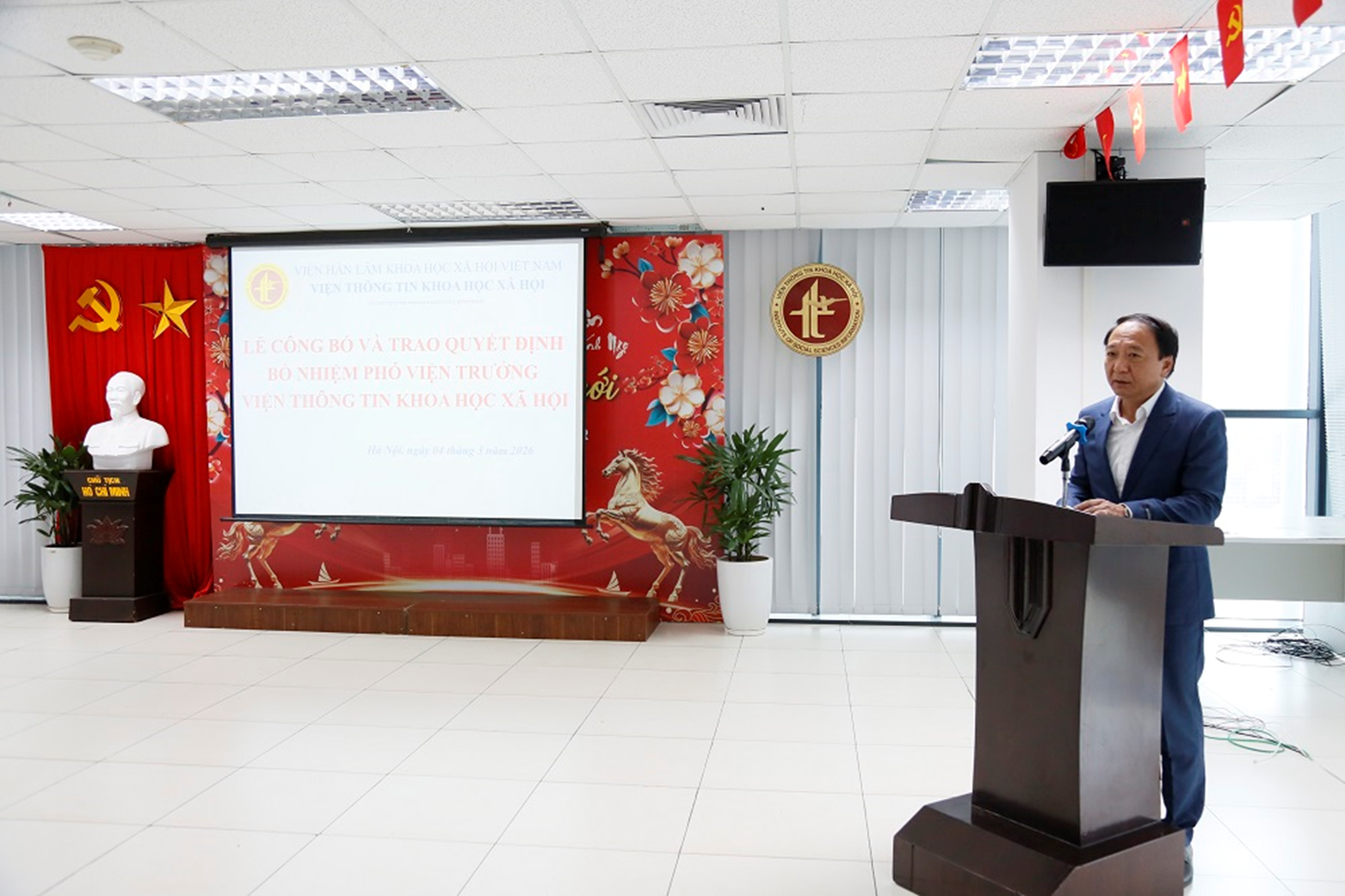 Thực hiện quyết định về công tác cán bộ, nhằm kiện toàn bộ máy lãnh đạo, quản lý Viện Thông tin Khoa học xã hội (KHXH), ngày 04/03/2026, tại trụ sở số 1 Liễu Giai, Ngọc Hà, Hà Nội, Viện Hàn lâm Khoa học xã hội Việt Nam (Viện Hàn lâm) đã tổ chức Lễ công bố và trao Quyết định điều động, bổ nhiệm PGS.TS. Nguyễn Duy Lợi - Phó Giám đốc Nhà xuất bản và Tạp chí KHXH giữ chức vụ Phó Viện trưởng Viện Thông tin KHXH.