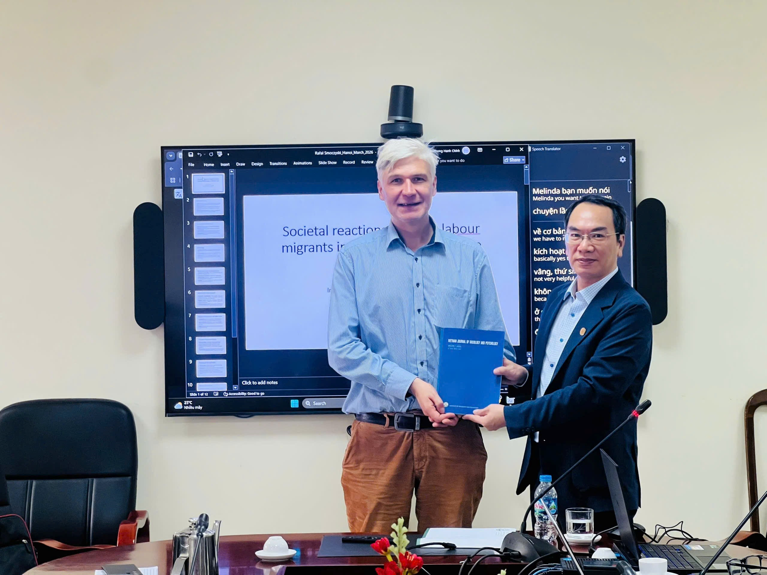 PGS.TS. Chu Văn Tuấn, Bí thư Chi bộ, Viện trưởng Viện Xã hội học và Tâm lý học tặng tạp chí đến PGS.TS. Rafał Smoczyński
