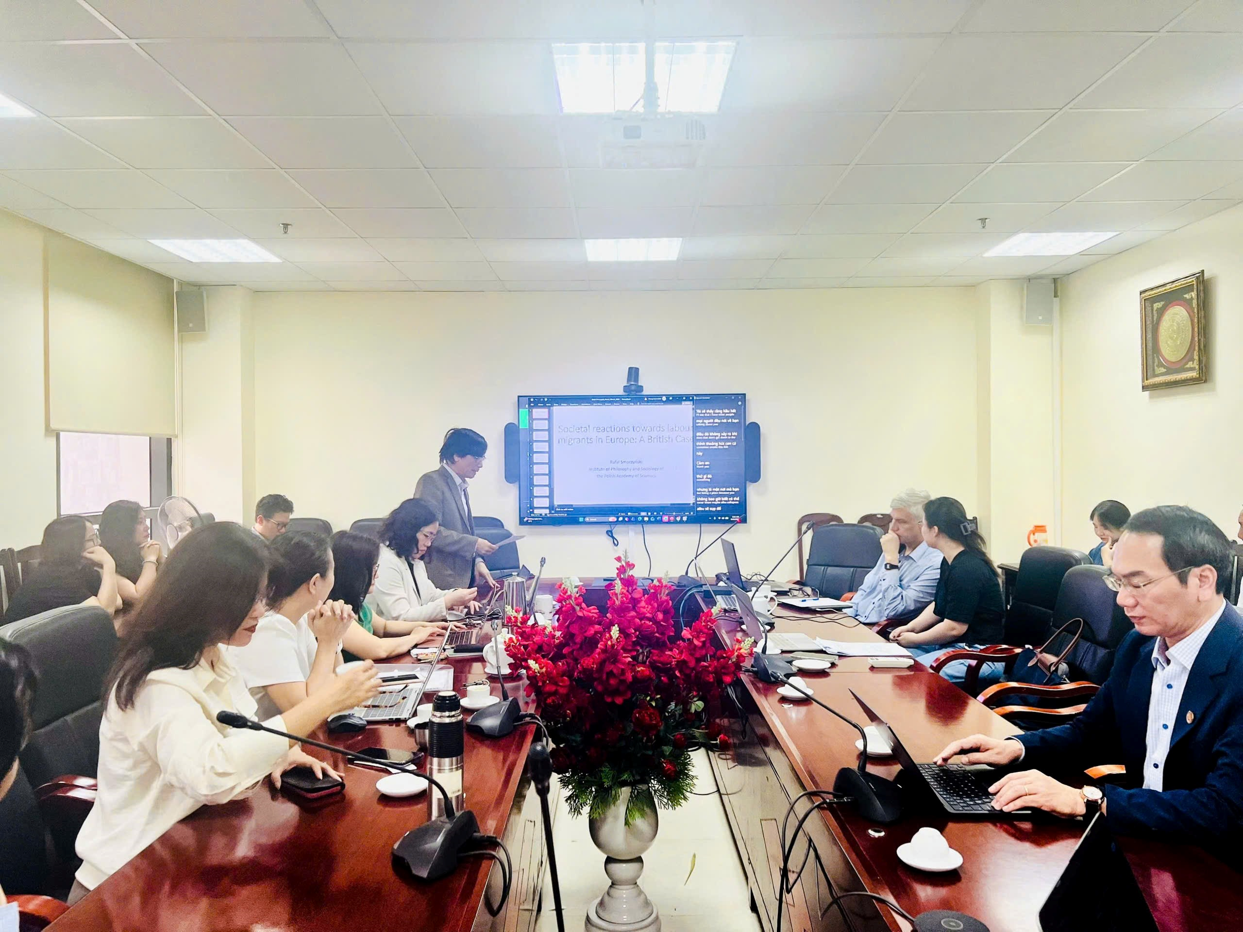 Sáng ngày 19/3/2026, tại phòng họp Viện Xã hội học và Tâm lý học (176 Thái Hà, Đống Đa, Hà Nội), Viện Xã hội học và Tâm lý học đã tổ chức tọa đàm khoa học về chủ đề “Phản ứng xã hội đối với lao động nhập cư ở Châu Âu: Trường hợp Vương quốc Anh” (Societal reactions towards labour migrants in Europe: A British Case) do PGS.TS. Rafał Smoczyński, Viện Triết học và Xã hội học, thuộc Viện Hàn lâm Khoa học Ba Lan, trình bày.