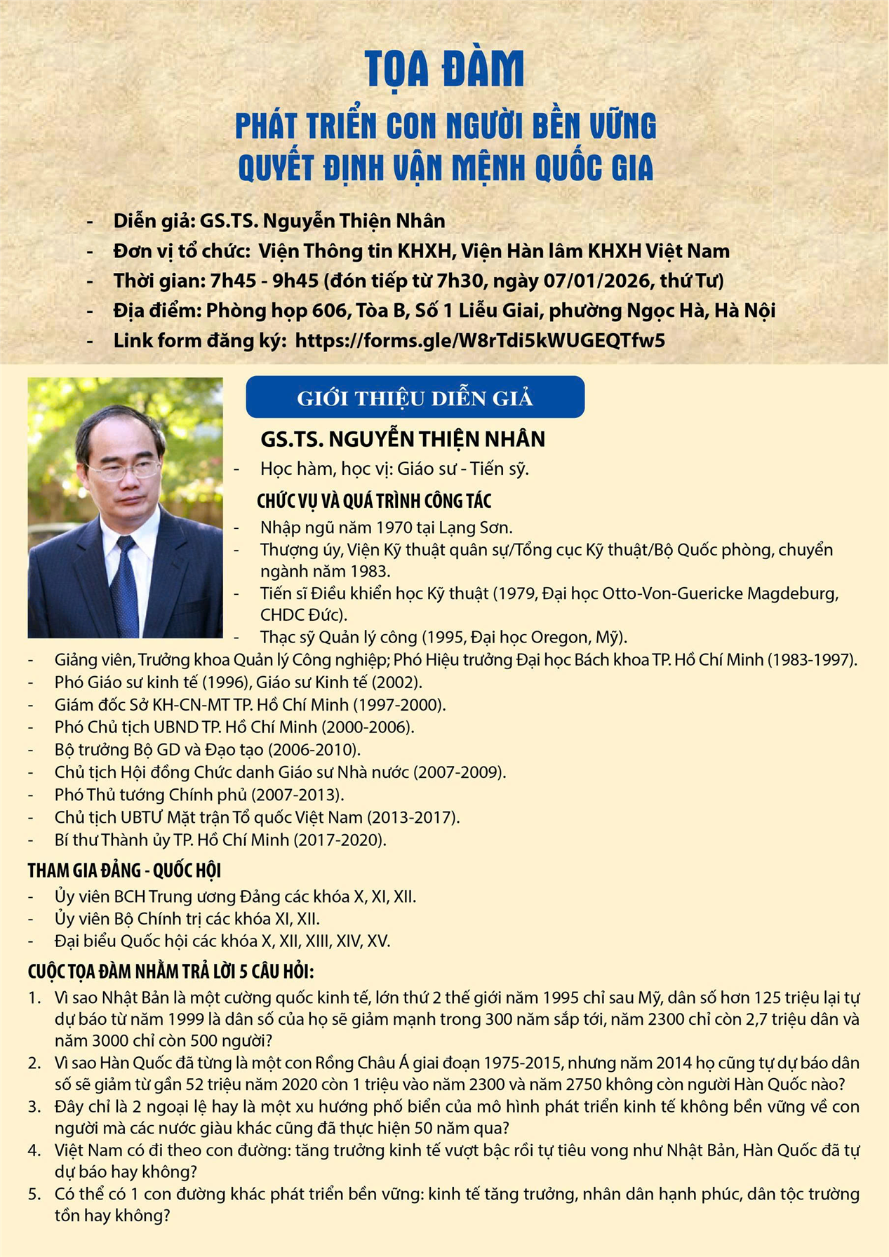 Link đăng ký tham dự tọa đàm: "Phát triển con người bền vững quyết định vận mệnh quốc gia"