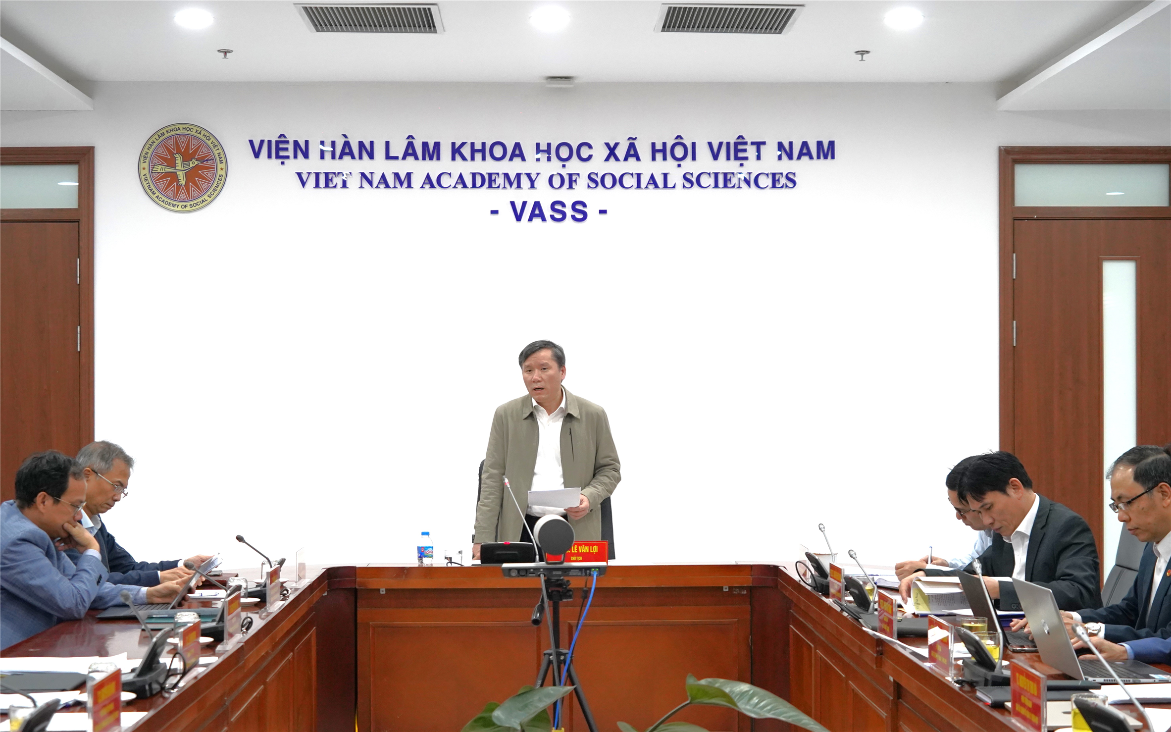 Đại diện Văn phòng Viện Hàn lâm, TS. Nguyễn Bùi Nam – Phó Chánh Văn phòng, báo cáo kết quả triển khai nhóm nhiệm vụ chuyển đổi số. Theo đó, Văn phòng chủ trì 12 nhiệm vụ và phối hợp thực hiện 7 nhiệm vụ khác theo Kế hoạch số 965/KH-KHXH với tiến độ và chất lượng được đảm bảo.