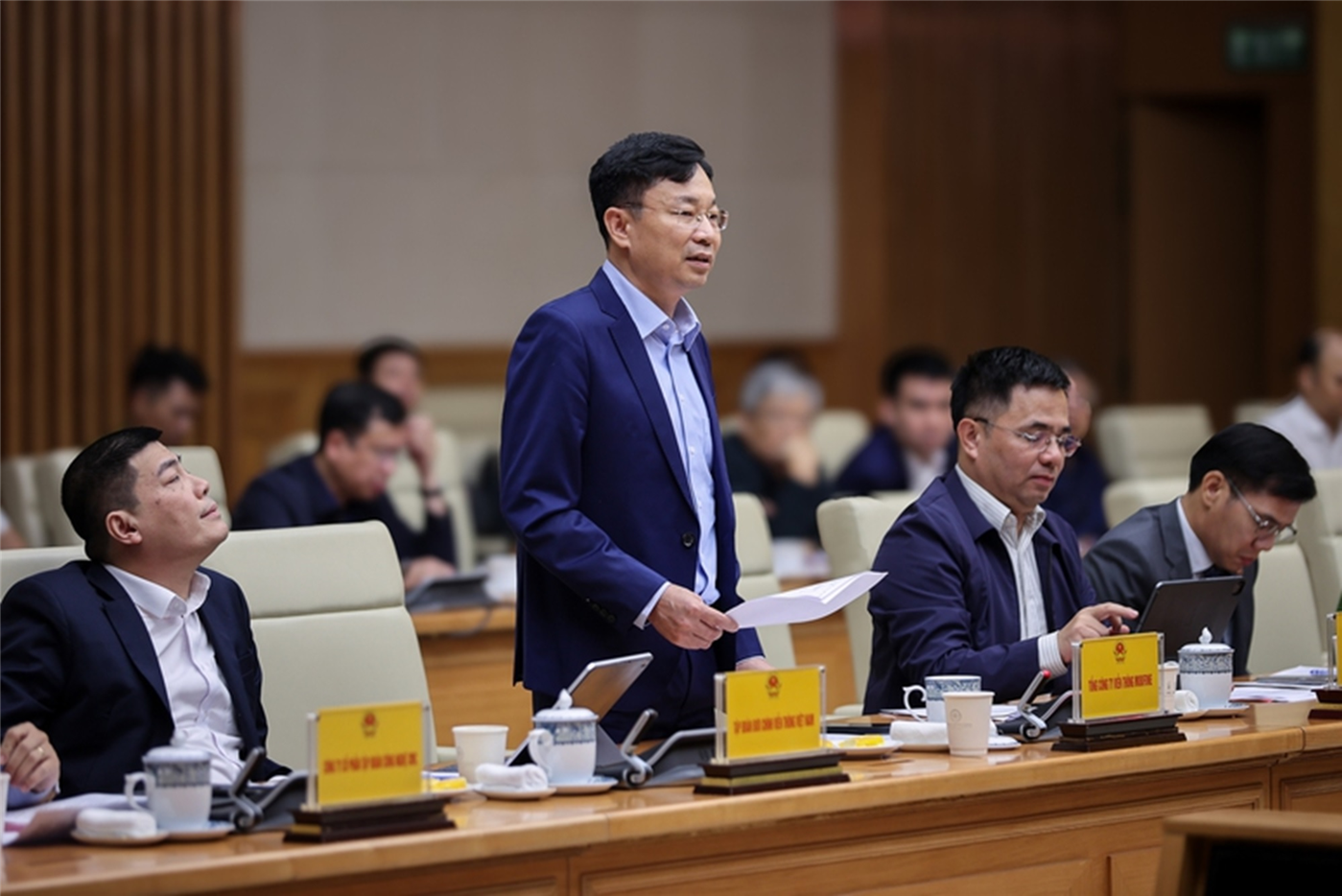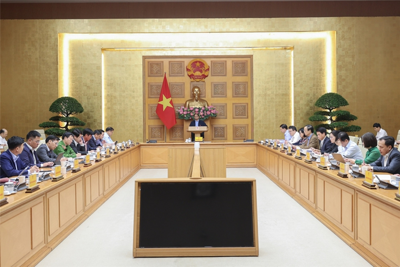 Thủ tướng phát biểu kết luận cuộc làm việc về xây dựng hành lang pháp lý, chính sách và thể chế để thúc đẩy hình thành và phát triển sàn dữ liệu Việt Nam - Ảnh: VGP/Nhật Bắc