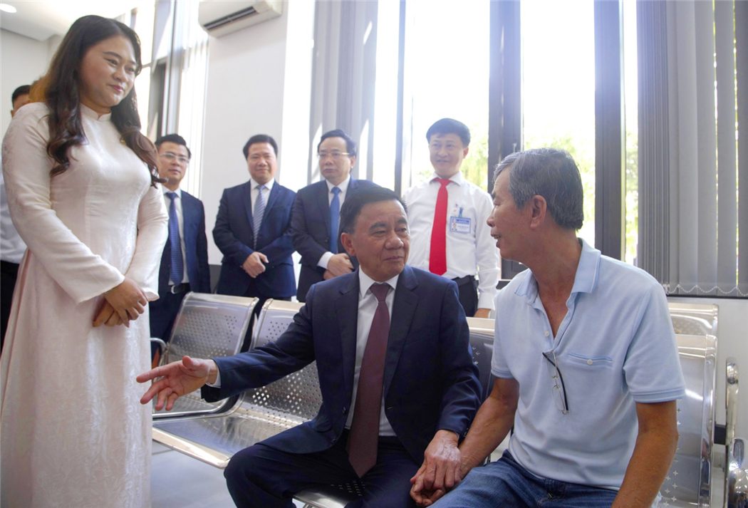 Ủy viên Bộ Chính trị, Thường trực Ban Bí thư Trần Cẩm Tú thăm hỏi người dân tại Ủy ban nhân dân phường Hải Châu, thành phố Đà Năng_Ảnh: TTXVN
