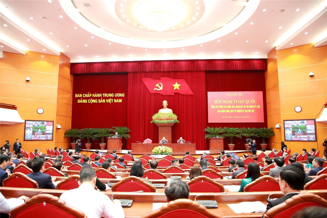 Phát biểu chỉ đạo tại Hội nghị toàn quốc tổng kết công tác kiểm tra, giám sát và thi hành kỷ luật năm 2025 và nhiệm kỳ Đại hội XIII của Đảng, sáng 24/11, thay mặt Bộ Chính trị, Ban Bí thư Tổng Bí thư Tô Lâm nhiệt liệt biểu dương, khen ngợi và đánh giá cao những thành tích, kết quả công tác kiểm tra, giám sát, thi hành kỷ luật của Đảng năm 2025 và cả nhiệm kỳ Đại hội XIII của Đảng.