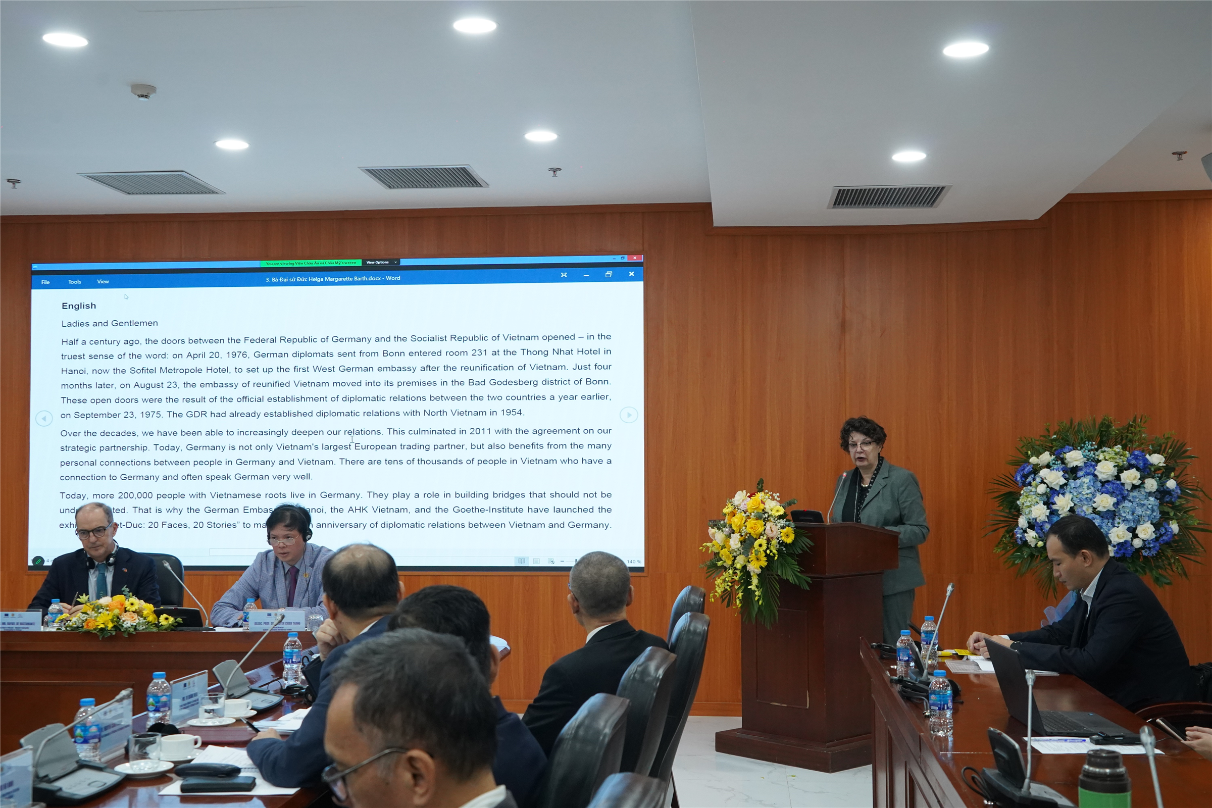 Bà Đại sứ Helga Margarete Barth, Đại sứ quán Đức tại Việt Nam trình bày tham luận tại Hội thảo