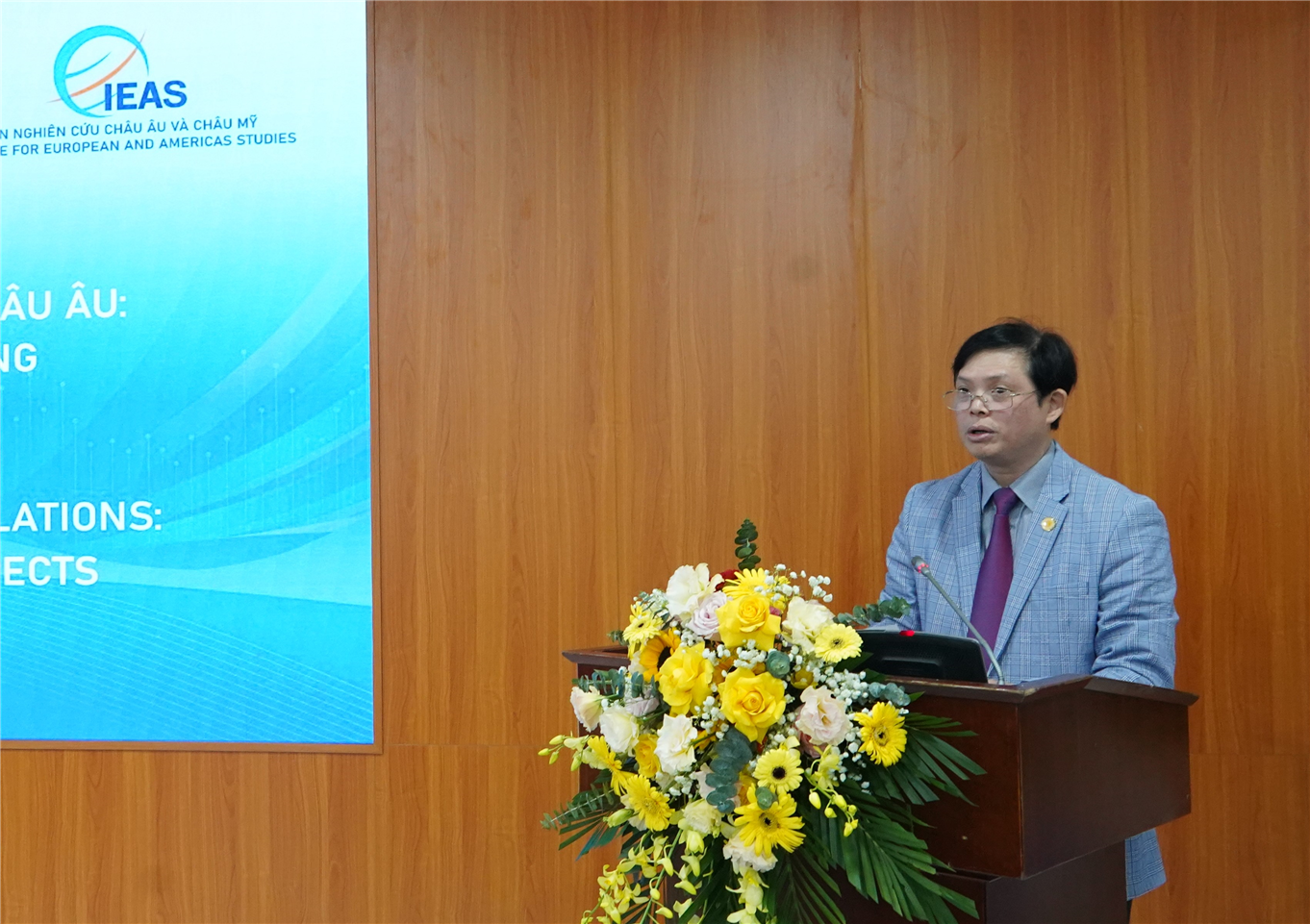 PGS.TS. Nguyễn Chiến Thắng, Viện trưởng Viện Nghiên cứu Châu Âu và Châu Mỹ phát biểu tại Hội thảo