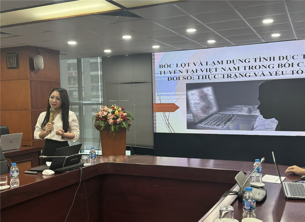 Chia sẻ về vấn đề bóc lột và lạm dụng tình dục trẻ em trực tuyến tại Việt nam trong bối cảnh chuyển đổi số, TS. Phùng Thanh Thảo cho biết trẻ em gái có nguy cơ bị bóc lột và lạm dụng trực tuyến cao hơn trẻ em trai do tác động của nhiều yếu tố: bất bình đẳng giới, chuẩn mực ứng xử truyền thống, hạn chế về kỹ năng số và những khoảng trống trong cơ chế và năng lực thực thi pháp luật,... Do đó, việc bảo vệ trẻ em gái nói riêng và trẻ em nói chung trên không gian mạng cần được nhìn nhận như một yêu cầu cấp thiết, đòi hỏi giải pháp đồng bộ từ hoàn thiện pháp luật, tăng cường thực thi, nâng cao kỹ năng số đến thúc đẩy hợp tác đa ngành và quốc tế,…
