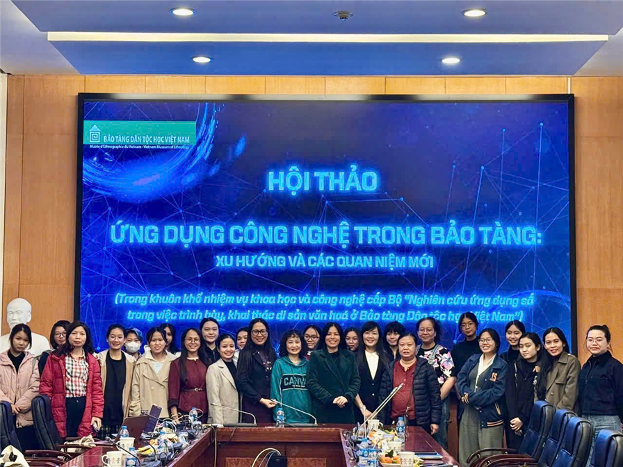 Chiều ngày 21/11/2025, Bảo tàng Dân tộc học Việt Nam đã tổ chức Hội thảo khoa học với chủ đề “Ứng dụng công nghệ trong Bảo tàng: Xu hướng và các quan niệm mới”. Đây là hoạt động chuyên môn nằm trong khuôn khổ nhiệm vụ khoa học và công nghệ cấp Bộ: “Nghiên cứu ứng dụng số trong việc trình bày, khai thác di sản văn hóa ở Bảo tàng Dân tộc học Việt Nam”, do TS. An Thu Trà làm chủ nhiệm.