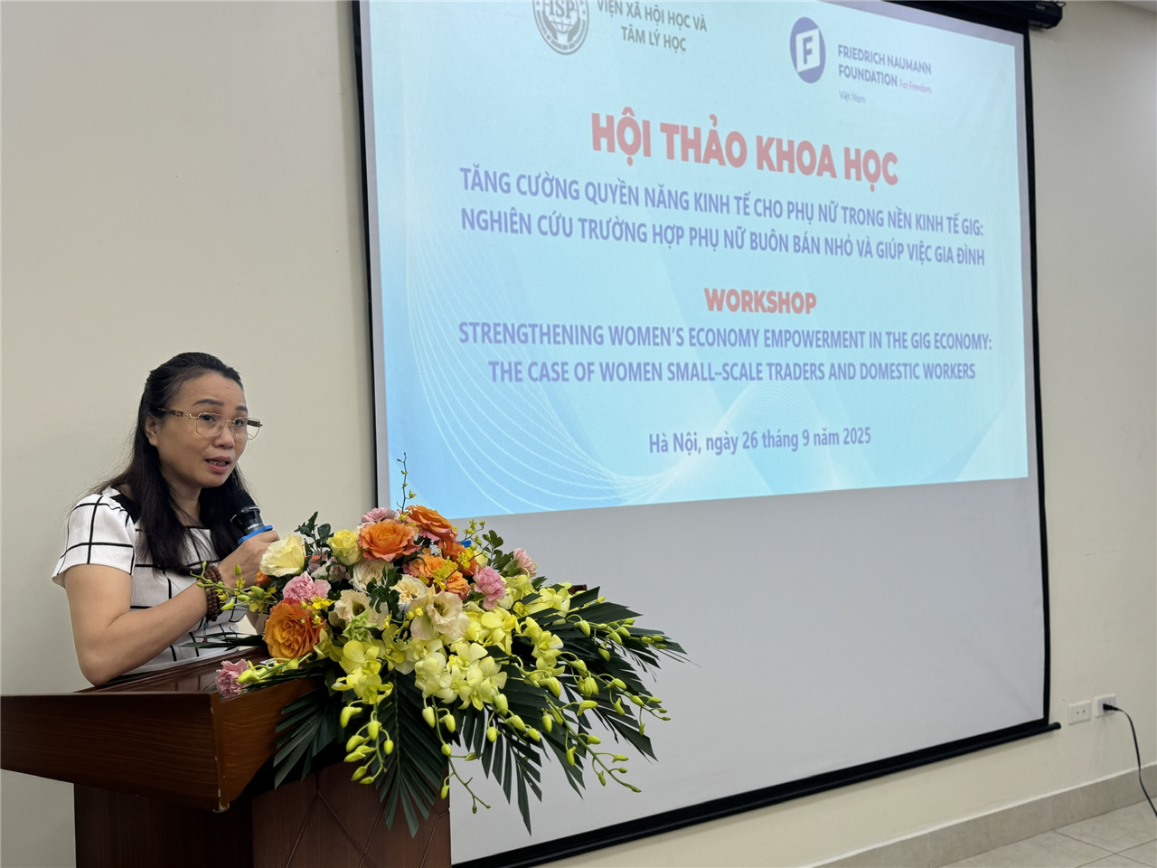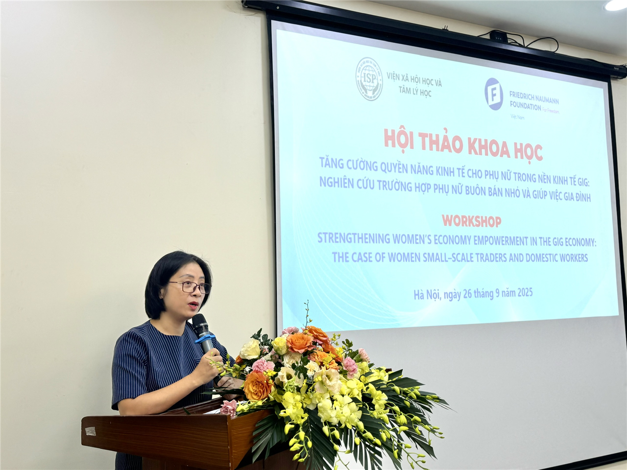 Trong báo cáo đề dẫn, PGS.TS. Đặng Thị Hoa – Phó Viện trưởng Viện Xã hội học và Tâm lý học cho biết, nghiên cứu năm 2025 thực hiện tại Hà Nội với 324 phiếu khảo sát, 20 cuộc thảo luận nhóm và phỏng vấn sâu mới chỉ đặt những viên gạch đầu tiên cho việc đánh giá toàn diện quyền năng kinh tế của phụ nữ trong nền kinh tế GIG. Kết quả ban đầu này có tính định hướng, gợi mở nhiều vấn đề lý luận và chính sách cho các nghiên cứu tiếp theo.