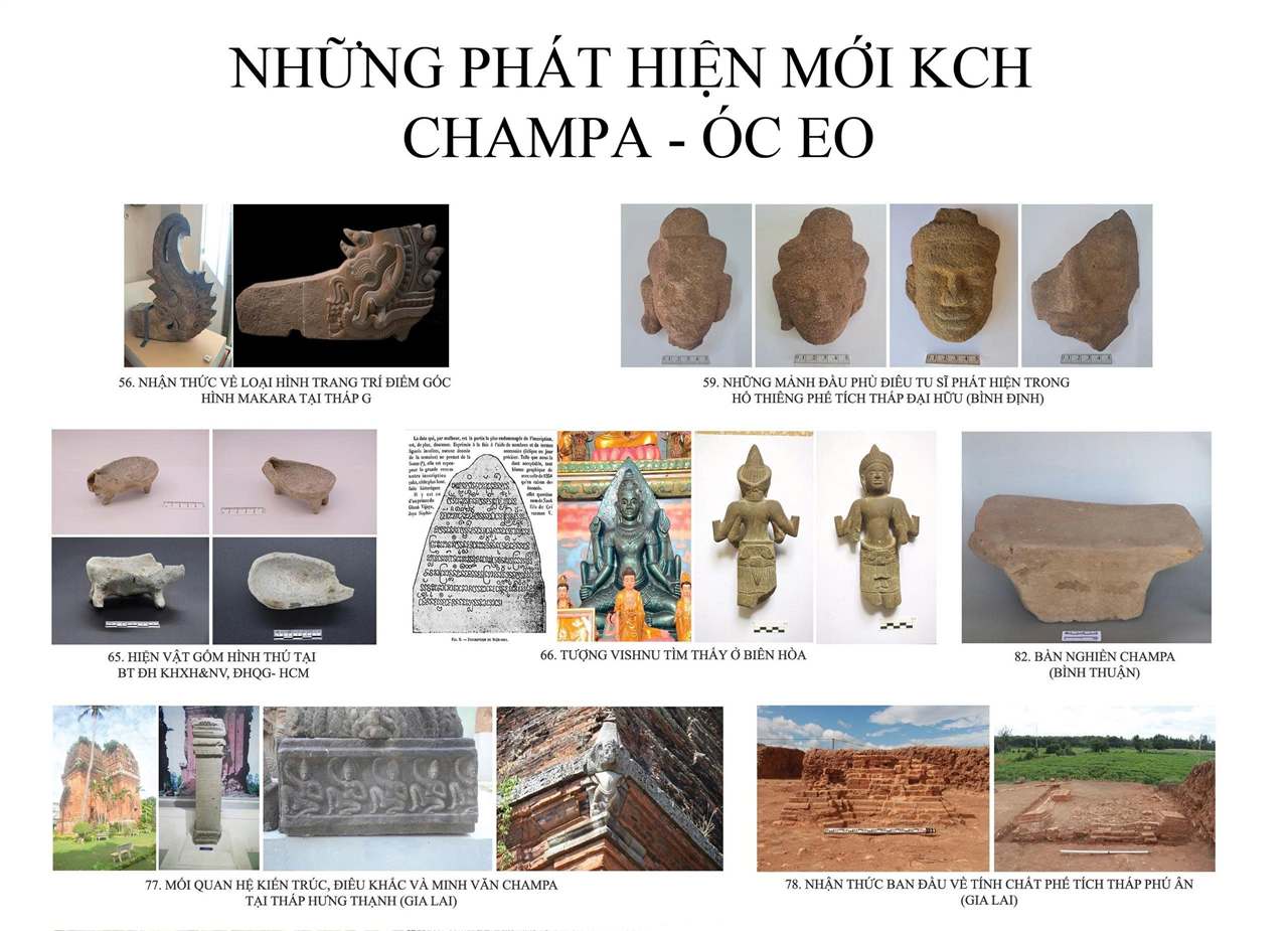 Phát hiện mới về tháp Vân Thê ở Huế; nhận thức mới về phế tích kiến trúc Phú Ân, Hưng Thạnh; nhận thức về tâm linh trong di tích Cát Tiên, di tích đập nước cổ và bia ký thế kỷ VIII – IX ở Ninh Thuận; Thông tin về khai quật di tích Thạnh Trung đã làm sáng tỏ bức tranh lịch sử giai đoạn đầu công nguyên ở Nam Bộ, xác định niên đại thuộc giai đoạn sớm của văn hóa Óc Eo, khoảng từ thế kỷ I đến thế kỷ III, nhận thức mới về quy hoạch đô thị cổ Ốc Eo, nông nghiêp lúa nước cảnh quan đô thị Ốc Eo… thời Ốc Eo được làm rõ với nhiều minh chứng về hiện vật được phát lộ.