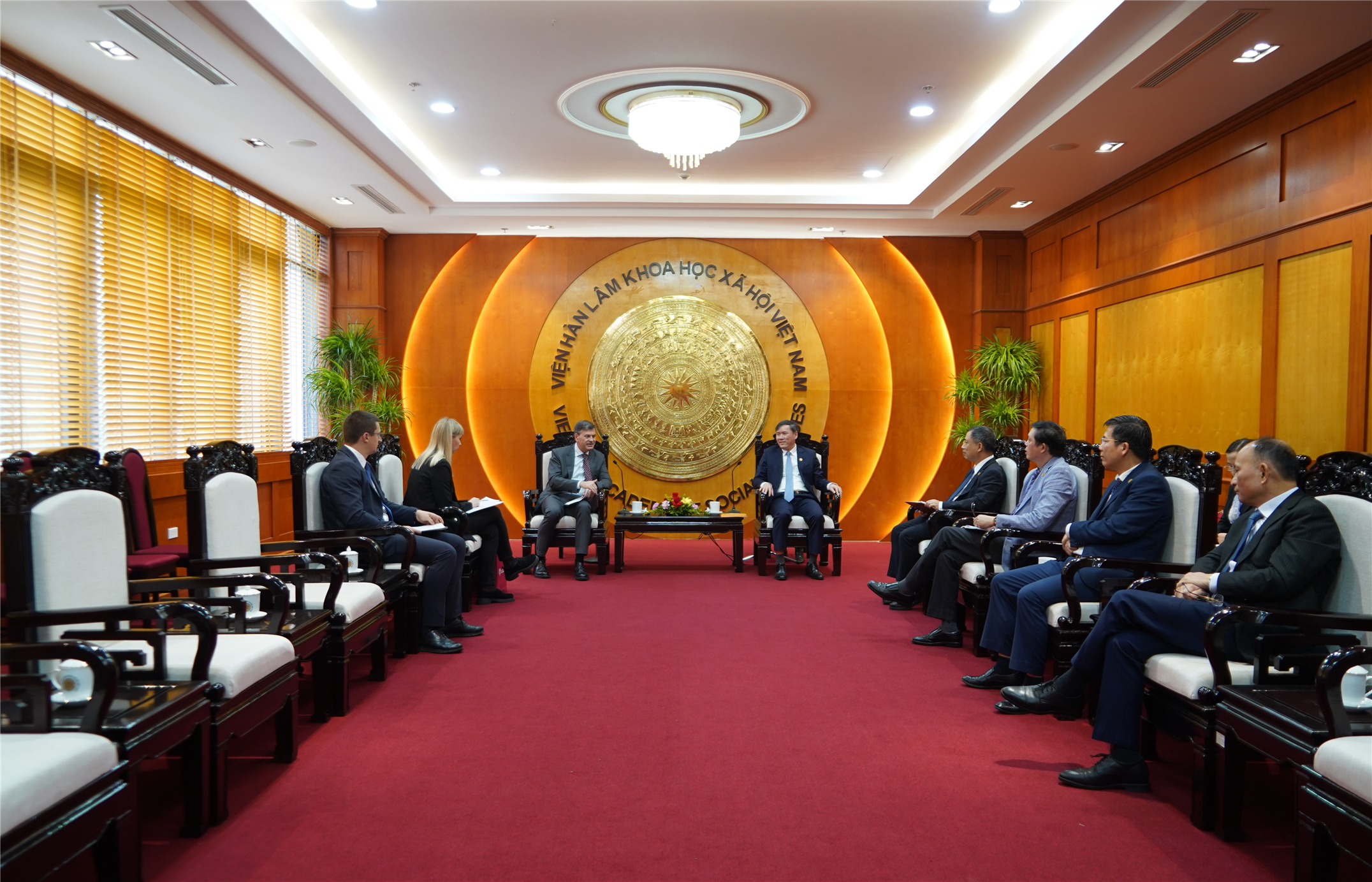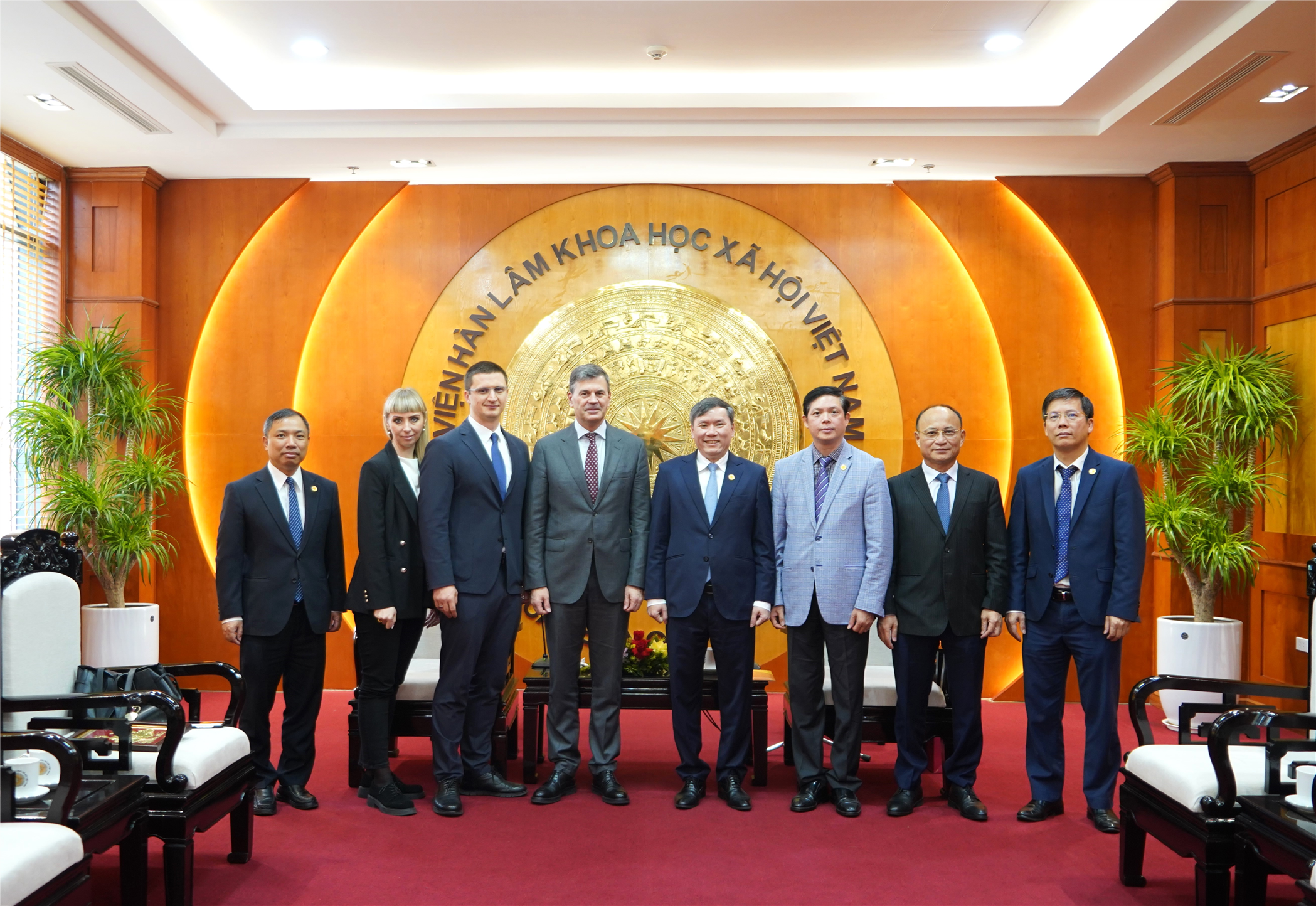 Trong bầu không khí hữu nghị và thân mật, Chủ tịch GS.TS. Lê Văn Lợi bày tỏ sự trân trọng đối với chuyến thăm của ông Alexey Komissarov, Giám đốc RANEPA cùng đoàn công tác và cho biết, VASS hiện có 18 Viện chuyên ngành, Học viện Khoa học xã hội, Bảo tàng Dân tộc học Việt Nam, Nhà xuất bản và Tạp chí khoa học xã hội, trong số đó đã và đang là đầu mối phối hợp với RANEPA dưới nhiều hình thức: hội thảo quốc tế, tọa đàm trực tuyến, trao đổi học thuật. Chính vì vậy, lãnh đạo VASS khẳng định mong muốn phát triển mạnh mẽ hơn nữa các chương trình hợp tác nghiên cứu, đào tạo nhân lực chất lượng cao, đặc biệt trong giai đoạn Việt Nam đang đẩy mạnh hội nhập quốc tế về khoa học xã hội.