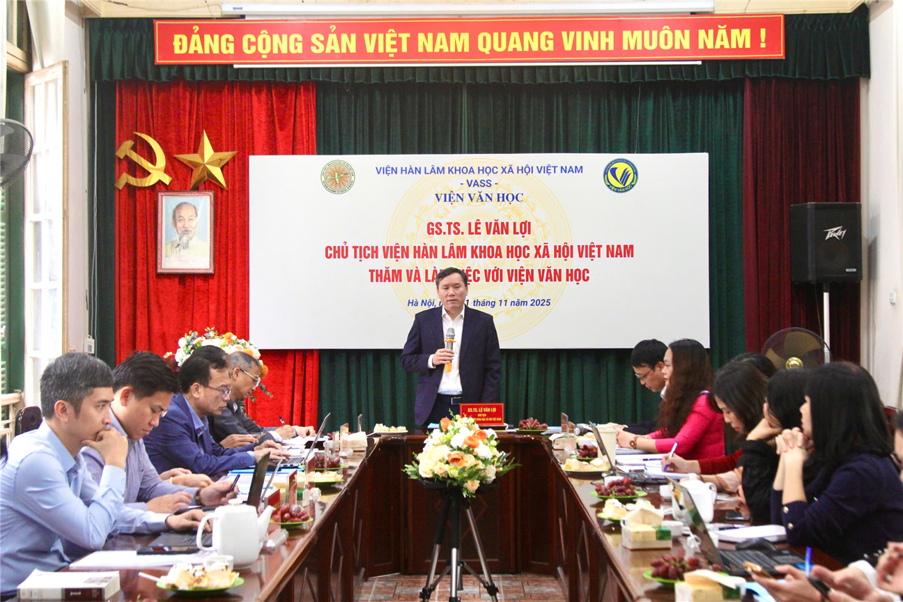 Nghiên cứu văn học không chỉ dừng lại ở phạm vi học thuật thuần túy mà cần phải gắn liền với thực tiễn và phục vụ chiến lược phát triển quốc gia. Văn học là kho tàng lưu giữ bản sắc, tâm hồn và những giá trị cốt lõi của dân tộc. Việc nghiên cứu sâu các tác phẩm văn học, từ đó làm giàu hệ thống lý luận không chỉ giúp chúng ta giải mã quá khứ mà còn cung cấp những tri thức quý báu để xây dựng văn hóa và con người Việt Nam trong bối cảnh mới. Thông điệp này được GS.TS. Lê Văn Lợi, Bí thư Đảng ủy, Chủ tịch Viện Hàn lâm Khoa học Xã hội Việt Nam (Viện Hàn lâm) nhấn mạnh tại buổi làm việc với tập thể lãnh đạo và viên chức, người lao động Viện Văn học chiều ngày 11/11/2025, nhằm đánh giá toàn diện kết quả đạt được và định hướng chiến lược phát triển trong thời gian tới.