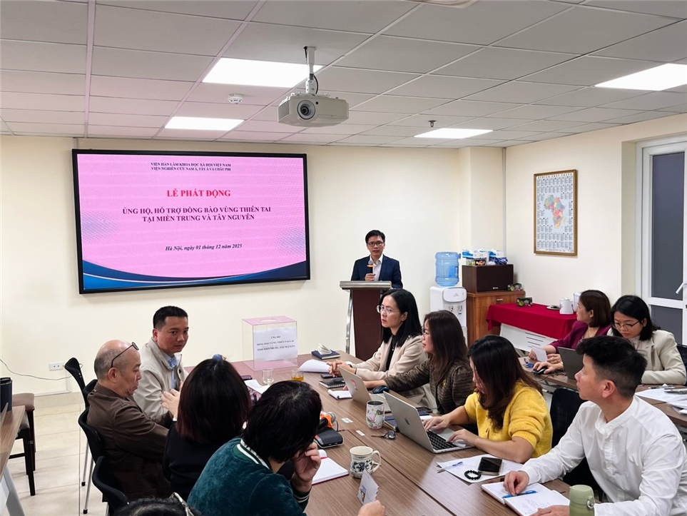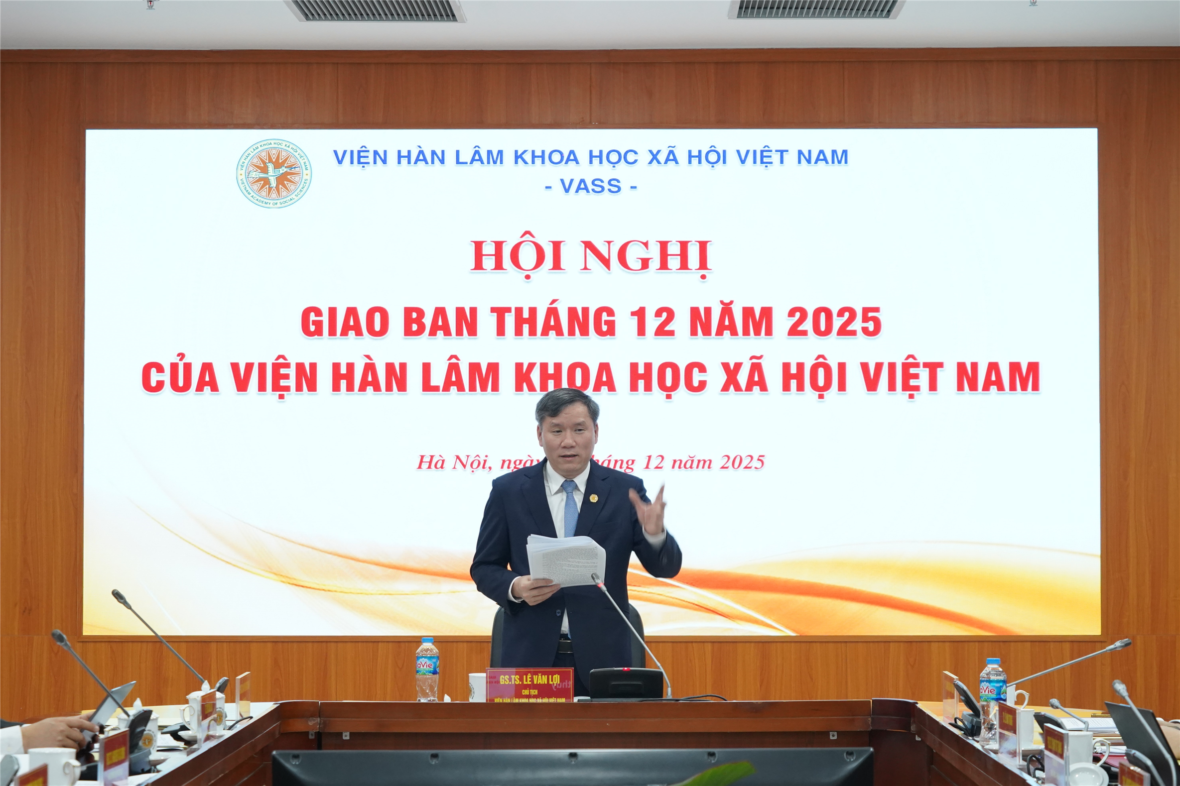 Sáng 02/12/2025, tại trụ sở số 1 Liễu Giai, Ngọc Hà, Hà Nội, Viện Hàn lâm Khoa học xã hội Việt Nam (Viện Hàn lâm) tổ chức Hội nghị giao ban công tác tháng 12/2025 dưới sự chủ trì của GS.TS. Lê Văn Lợi, Bí thư Đảng ủy, Chủ tịch Viện Hàn lâm. Tham dự Hội nghị có TS. Đặng Xuân Thanh, Phó Chủ tịch Viện Hàn lâm; TS. Đỗ Xuân Lân, Phó Bí thư Đảng ủy chuyên trách; Lãnh đạo các đơn vị thuộc và trực thuộc Viện; Chánh Văn phòng Đảng ủy; Chủ tịch Hội đồng Học viện Khoa học xã hội; Bí thư Đoàn TNCS Hồ Chí Minh và Chủ tịch Hội Cựu Chiến binh Viện Hàn lâm.
