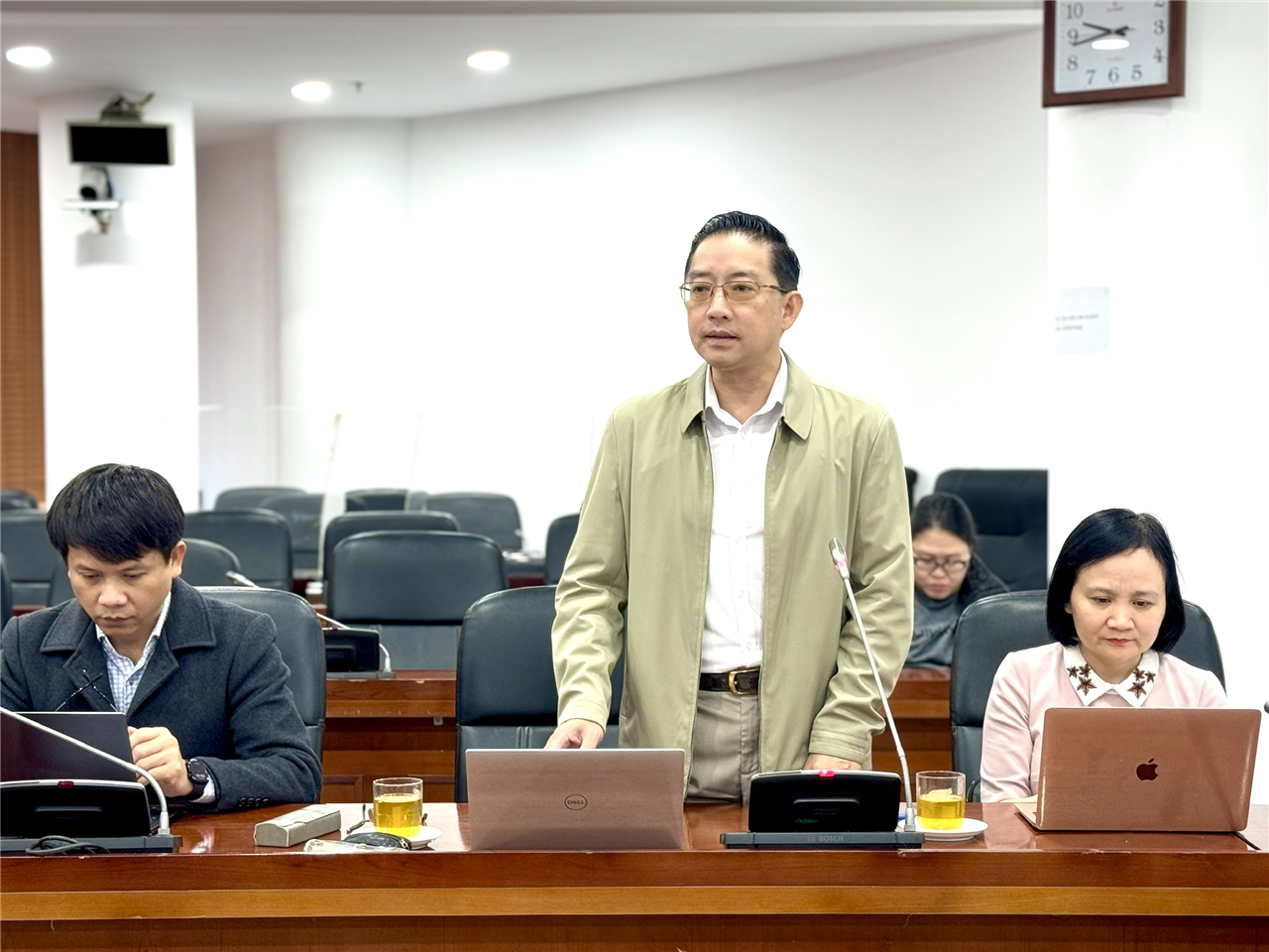 PGS.TS. Vũ Hùng Cường, Viện trưởng Viện Thông tin Khoa học xã hội phát biểu tại Hội nghị