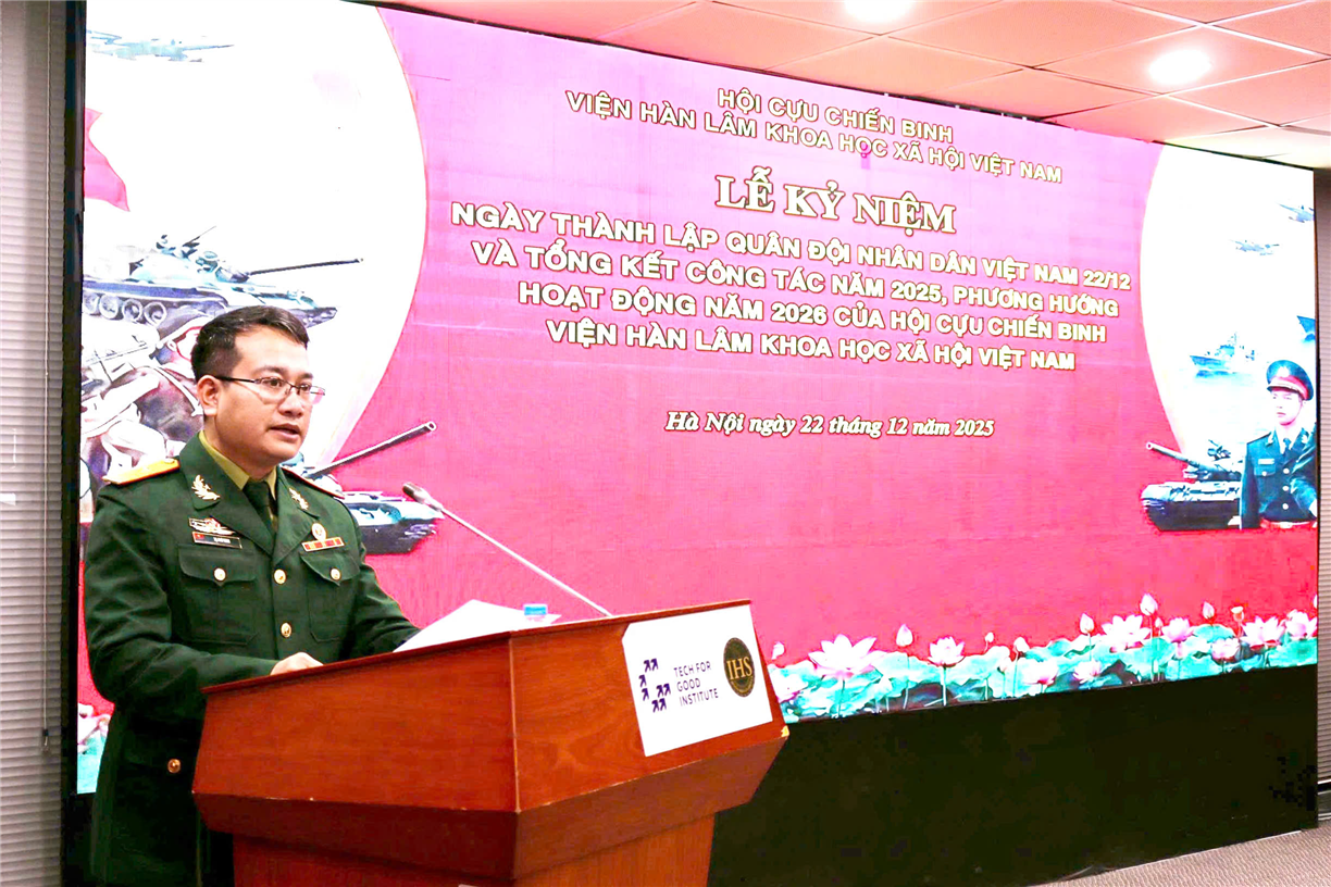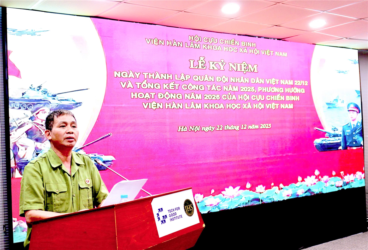 Buổi lễ khép lại, song tinh thần Ngày thành lập quân đội nhân Việt Nam 22/12 còn đọng lại trong mỗi người tham dự – đó là niềm tự hào về truyền thống, sự tri ân đối với quá khứ và trách nhiệm tiếp nối trong hiện tại và tương lại. Với phương hướng hoạt động năm 2026 đã được xác định, Hội Cựu chiến binh Viện Hàn lâm Khoa học xã hội Việt Nam tiếp tục khẳng định vai trò là điểm tựa tin cậy, góp phần gìn giữ và lan tỏa những giá trị tốt đẹp của người lính Cụ Hồ trong hành trình xây dựng và phát triển Viện Hàn lâm hôm nay./.