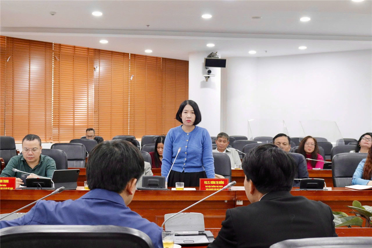 PGS.TS. Vương Thị Hường, Phó Viện trưởng phụ trách Viện Nghiên cứu Hán - Nôm phát biểu tại Cuộc họp