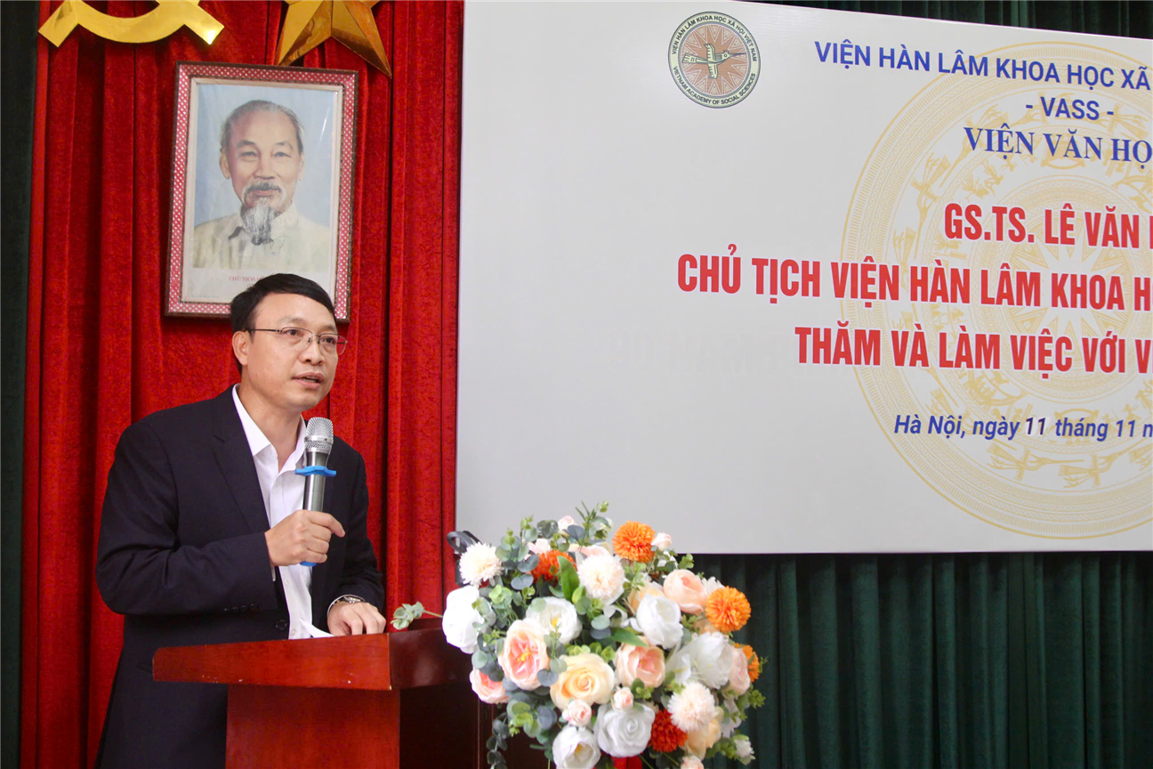 Phát biểu chỉ đạo tại buổi làm việc, GS.TS. Lê Văn Lợi, Bí thư Đảng ủy, Chủ tịch Viện Hàn lâm ghi nhận và biểu dương những thành tựu nghiên cứu đã đạt được của Viện trong thời gian qua. Chủ tịch đề nghị Viện Văn học tiếp tục thúc đẩy các định hướng nghiên cứu theo hướng tổng thể thông qua việc xây dựng chiến lược phát triển Viện, giai đoạn 2026-2035 tầm nhìn 2045, bám sát vào các chương trình hành động theo Nghị quyết Đảng bộ Viện Hàn lâm và Nghị quyết của Chi bộ; đẩy mạnh công tác phát triển đảng, công tác quy hoạch, có lộ trình phát triển, nâng cao chất lượng nguồn nhân lực và chất lượng các nghiên cứu theo hướng bám sát thực tiễn và các Nghị quyết của Đảng, Nhà nước trong giai đoạn chuyển đổi số hiện nay.