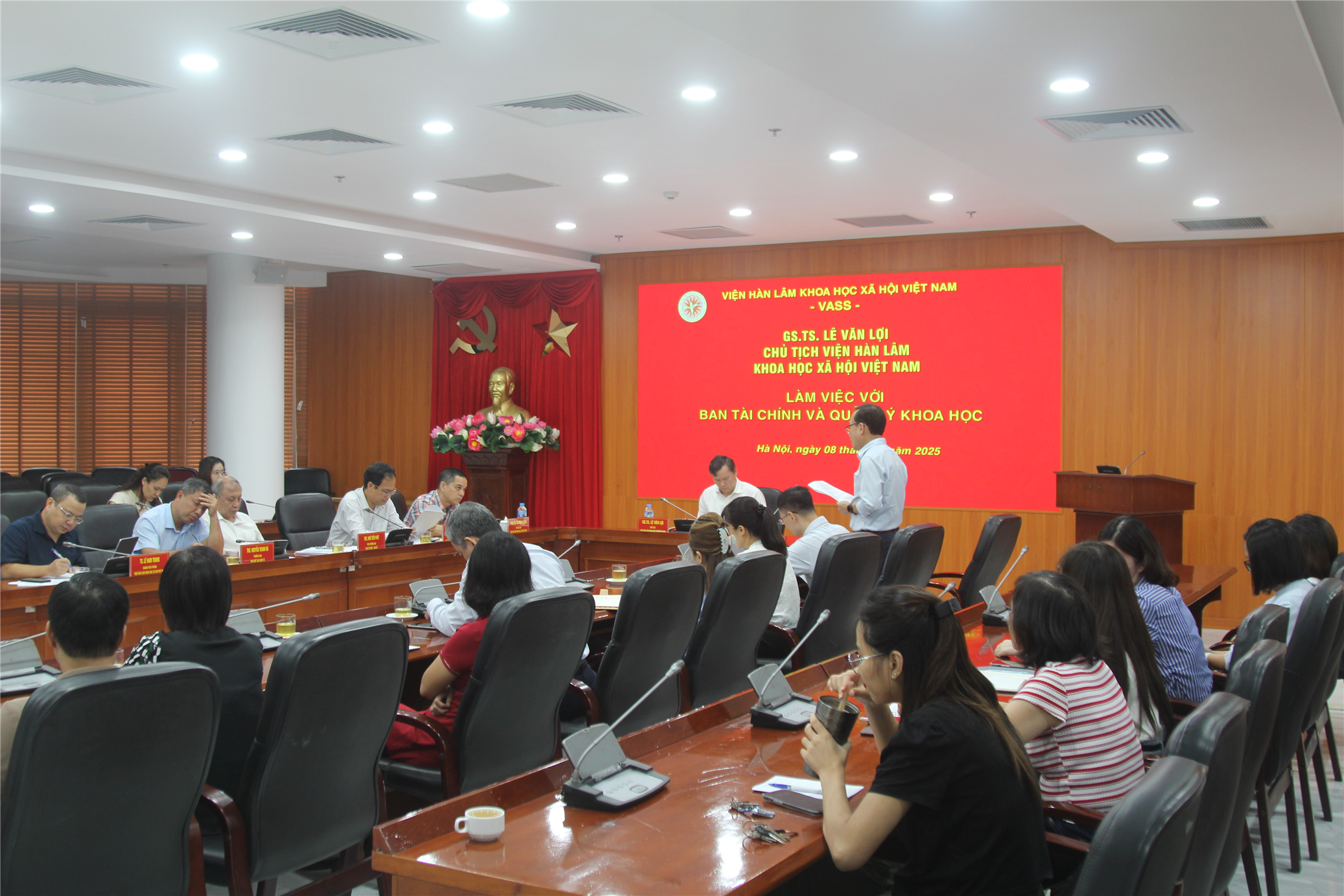 GS.TS. Lê Văn Lợi, Bí thư Đảng uỷ, Chủ tịch Viện Hàn lâm chủ trì buổi làm việc với Ban Tài chính và Quản lý khoa học