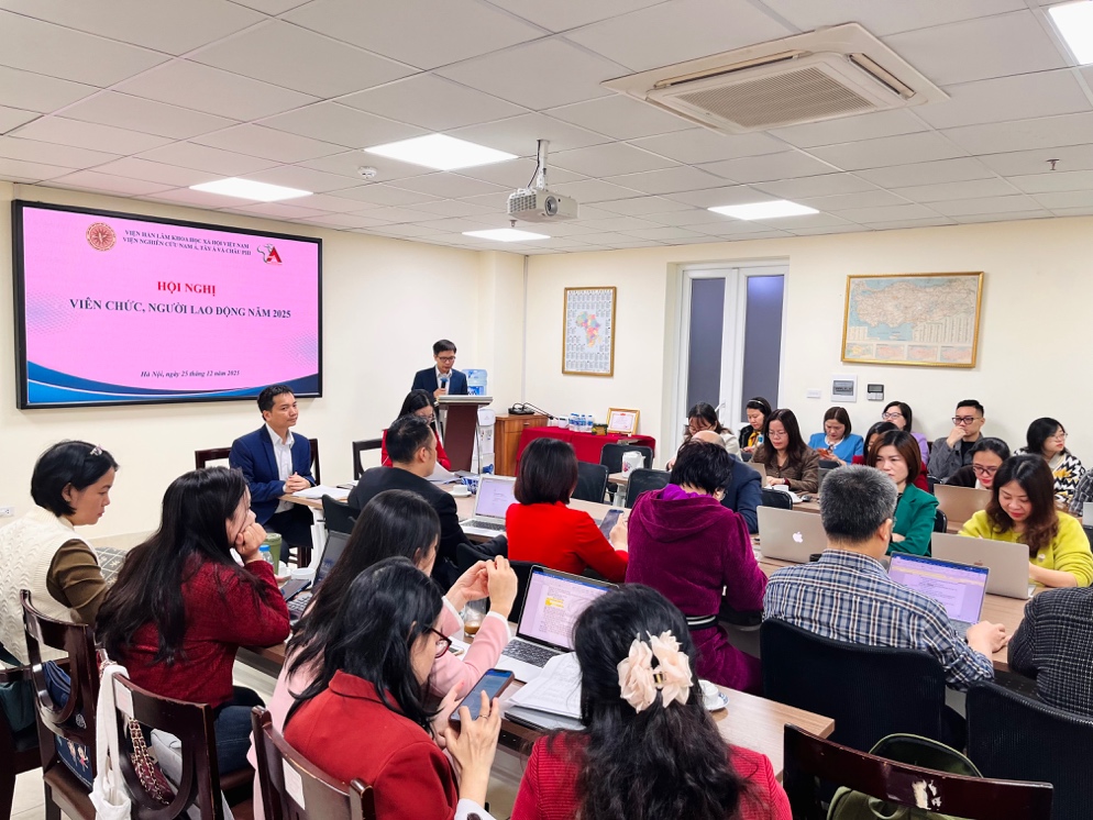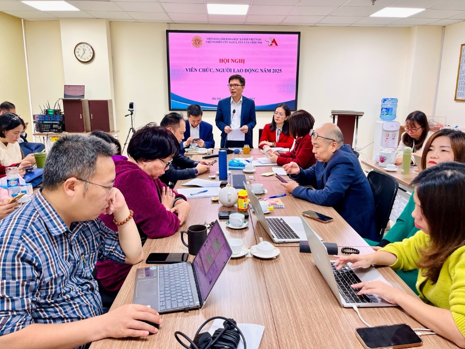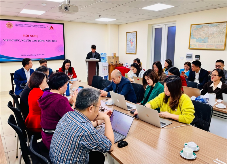 Sáng 25/12/2025, tại trụ sở 176 Thái Hà, Viện Nghiên cứu Nam Á, Tây Á và Châu Phi (ISAWAAS) trang trọng tổ chức “Hội nghị Viên chức, người lao động năm 2025”. Đây là hoạt động nhằm đánh giá những kết quả công tác trong năm 2025 và đề ra phương hướng, nhiệm vụ công tác trong năm 2026.