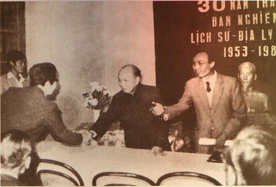 Đồng chí Trường Chinh, Ủy viên Bộ Chính trị Ban Chấp hành Trung ương Đảng, Chủ tịch Hội đồng Nhà nước, chủ trì Lễ kỷ niệm 30 năm thành lập Ban Văn Sử Địa (1953-1983) tại Viện Sử học