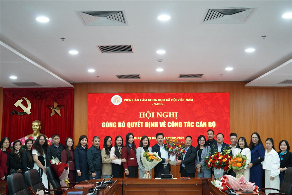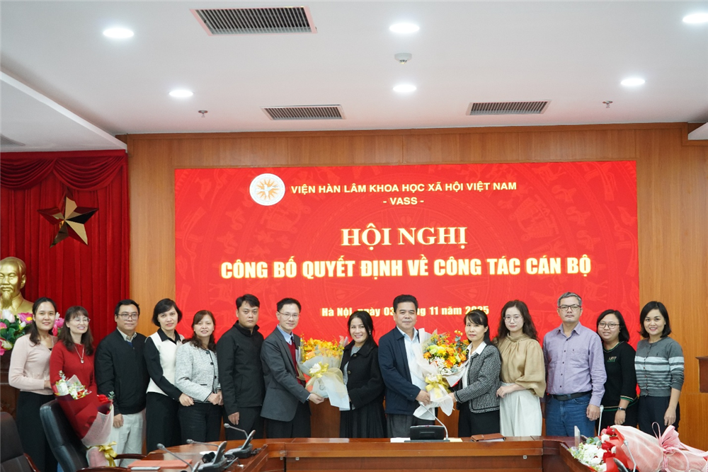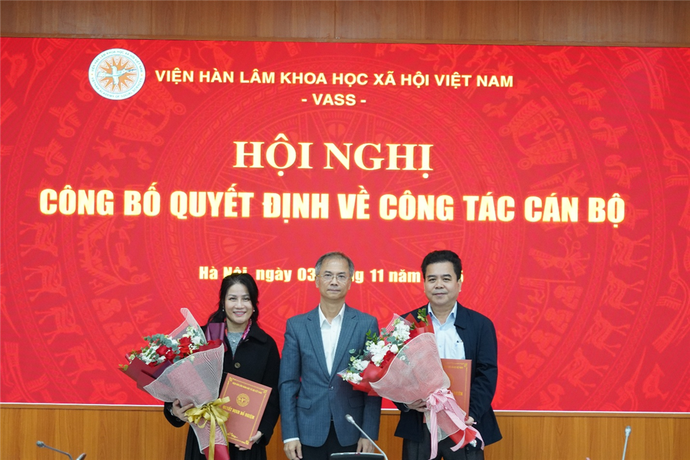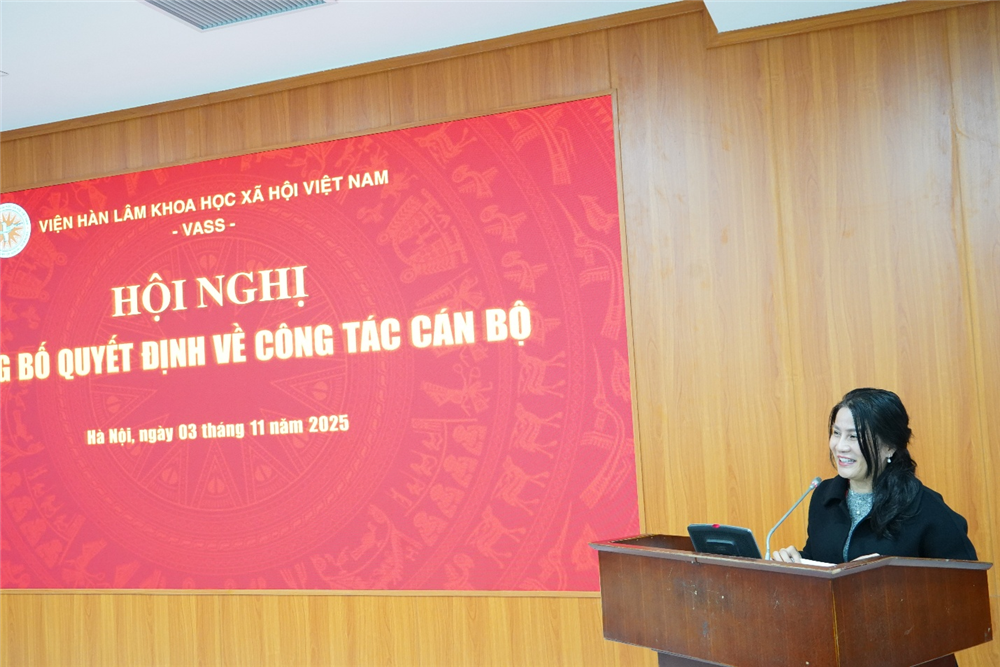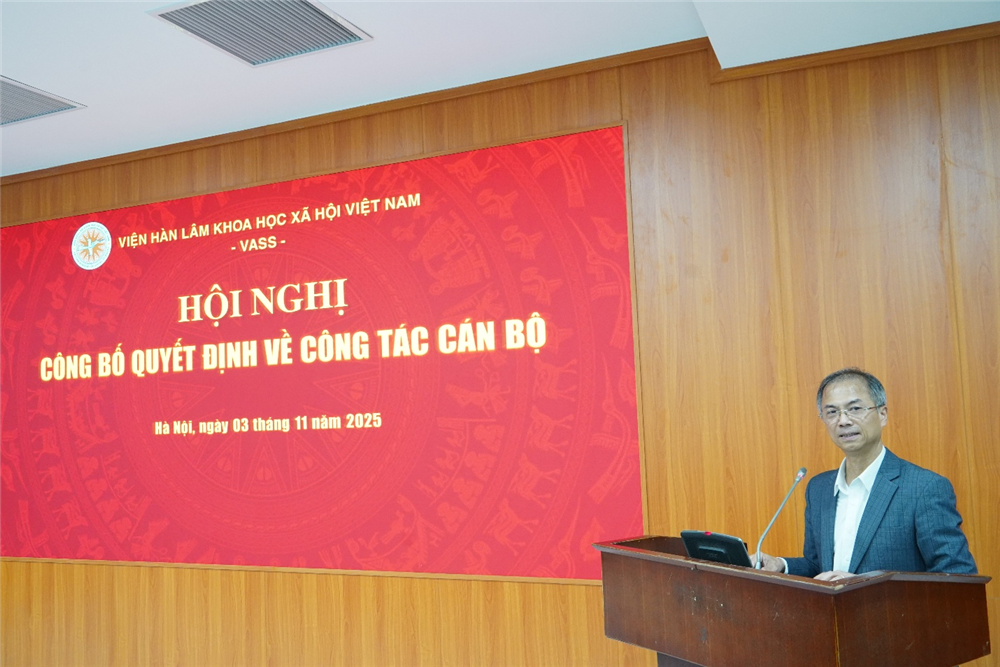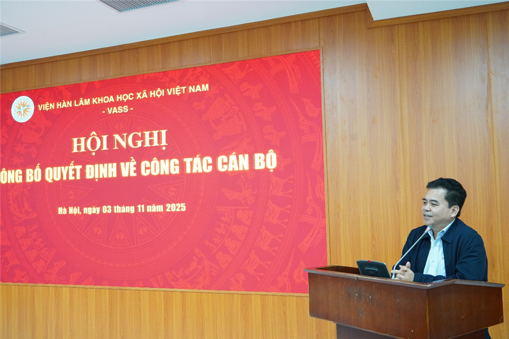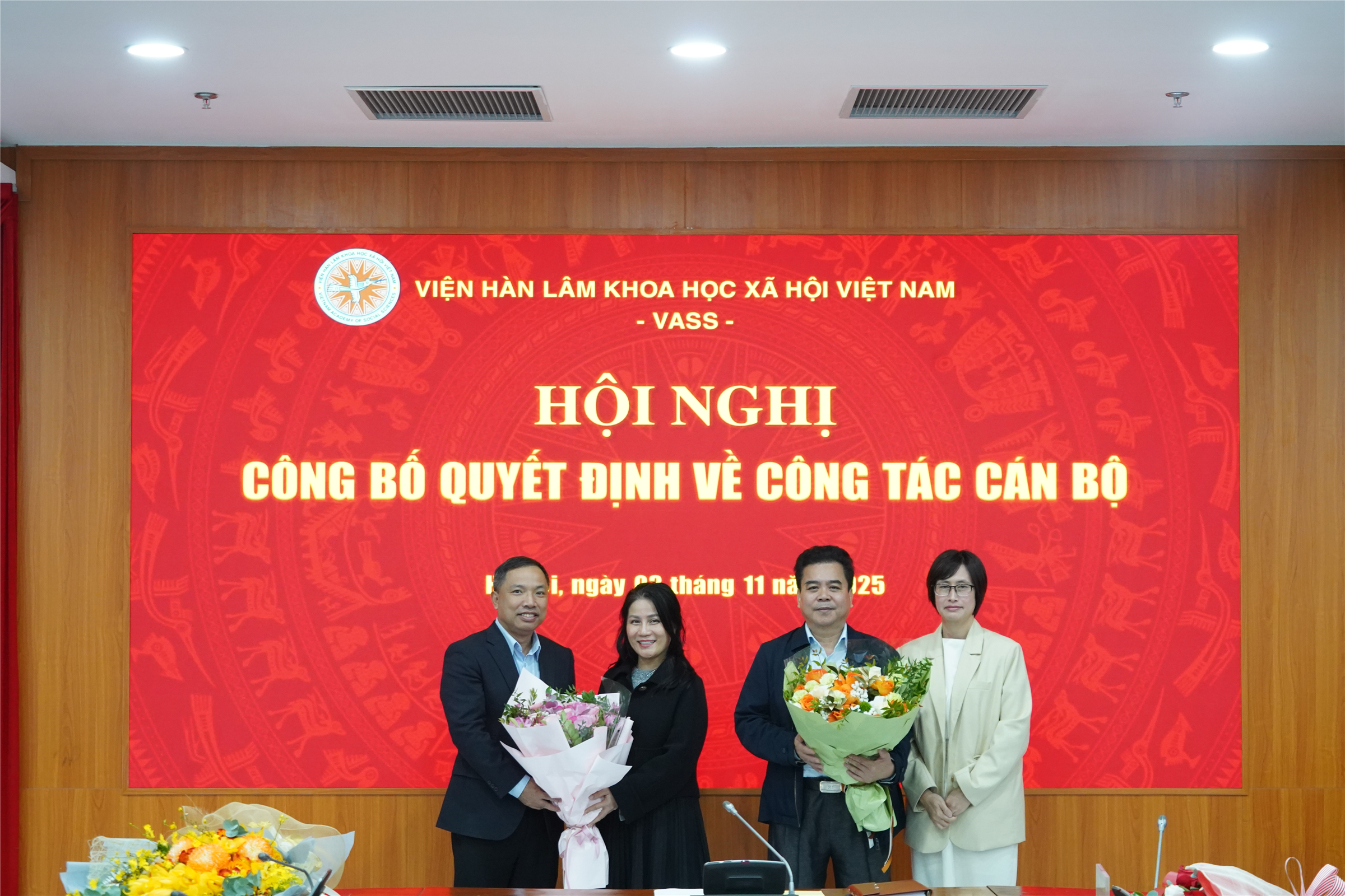Tại Hội nghị, ông Phạm Tất Thắng, Trưởng ban Ban Tổ chức – Cán bộ, công bố Quyết định số 1299/QĐ-KHXH ngày 30/10/2025 về việc bổ nhiệm lại bà Nguyễn Thị Thu Hà giữ chức Phó Trưởng ban Ban Tài chính và Quản lý khoa học; đồng thời công bố Quyết định số 1303/QĐ-KHXH ngày 31/10/2025 về việc kết thúc thời gian công tác biệt phái tại Bảo tàng Dân tộc học Việt Nam đối với ông Bùi Ngọc Quang, Phó Trưởng ban Ban Quản lý khoa học (nay là Ban Tài chính và Quản lý khoa học), để đồng chí trở lại nhận nhiệm vụ và tiếp tục đảm nhiệm chức vụ Phó Trưởng ban Ban Tài chính và Quản lý khoa học.