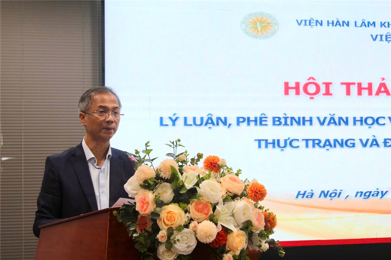 Trước xu thế vận động, phát triển mạnh mẽ của đất nước trong “kỷ nguyên vươn mình” đổi mới và hội nhập, Viện Hàn lâm với vai trò và sứ mệnh là cơ quan nghiên cứu hàng đầu trong lĩnh vực khoa học xã hội và nhân văn, luôn đồng hành và góp phần tích cực vào công cuộc phát triển chung của dân tộc. Trên tinh thần đó. Phó Chủ tịch Viện Hàn lâm đề nghị các tham luận và ý kiến đóng góp tại Hội thảo tập trung làm rõ những thành tựu, hạn chế của lý luận, phê bình văn học Việt Nam sau Đổi mới; Đề xuất những kiến nghị, định hướng phát triển phù hợp, góp phần bổ sung cơ sở lý luận, tư tưởng và thực tiễn cho lĩnh vực văn học, nghệ thuật đóng góp thiết thực cho quá trình tổng kết và hoạch định đường lối phát triển văn hóa, văn học của đất nước trong giai đoạn tới.
